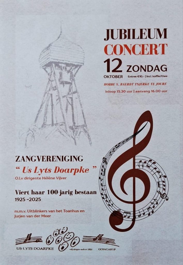 Zondag 12 oktober – Jubileum Concert Zangvereniging Us Lyts Doarpke