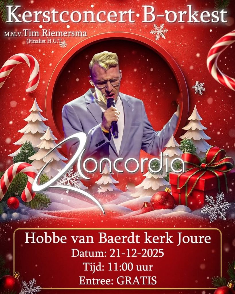 Kerstconcert B-orkest van Concordia met medewerking van Tim Riemersma. Dit wil je niet missen! Tim Riemersma (19 jaar) liet de jury van Hollands Got Talent tijdens de auditie verbazen! Hij gaf met zijn prachtige stem een bijzonder optreden. De jury was er zo onder de indruk van, dat hij de GOLDEN BUZZER kreeg! 🌟